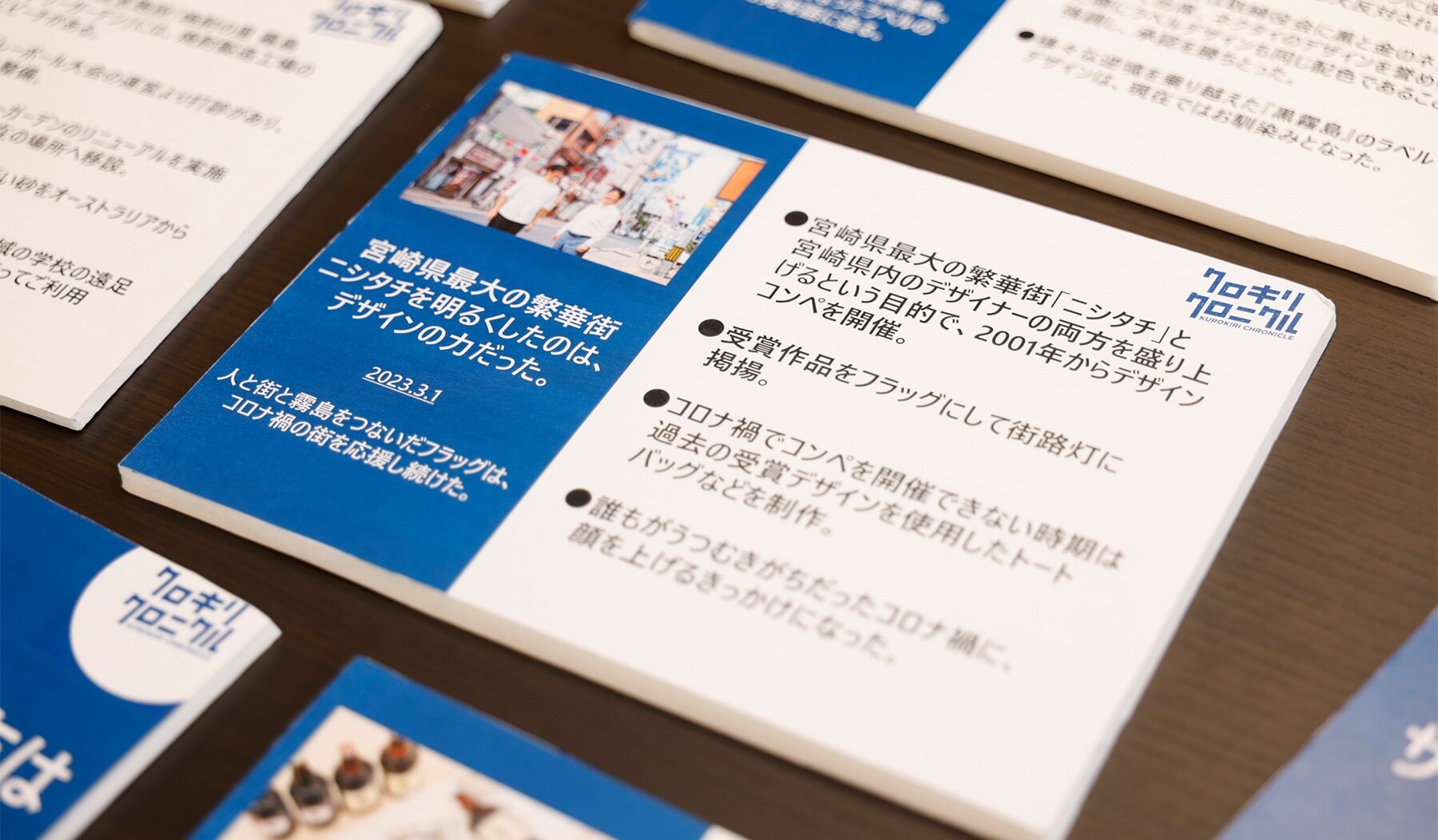 霧島酒造では、宮崎市の橘通りの西側に位置する宮崎県最大の飲食店街、通称「ニシタチ」と宮崎県内のデザイナーの両方を盛り上げる目的で2001年からデザインコンペを開催。受賞作品をフラッグにし、街路灯に掲げニシタチを盛り上げている。