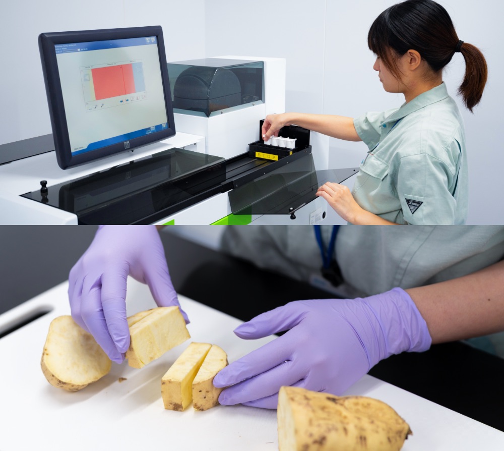 接收的原料(甘薯、大米)将经过产地、品种、颜色、形状以及病害损伤等检查。同时还将定期进行农药残留检测等公司内外部分析以确保安全性,并建立可以通过种植履历等方式确认原料安全性的体系。