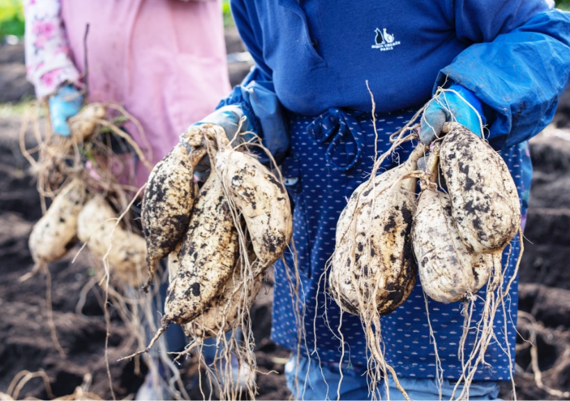 为获得更优品质的甘薯,雾岛酒造与生产农户合作,前往各地薯田开展收成调查,统计培育状况及病虫害等信息。在接收甘薯原料时,如发现有损伤或病害等情况,也会与生产农户共享注意事项,并建立合作体系以防止问题再次发生。